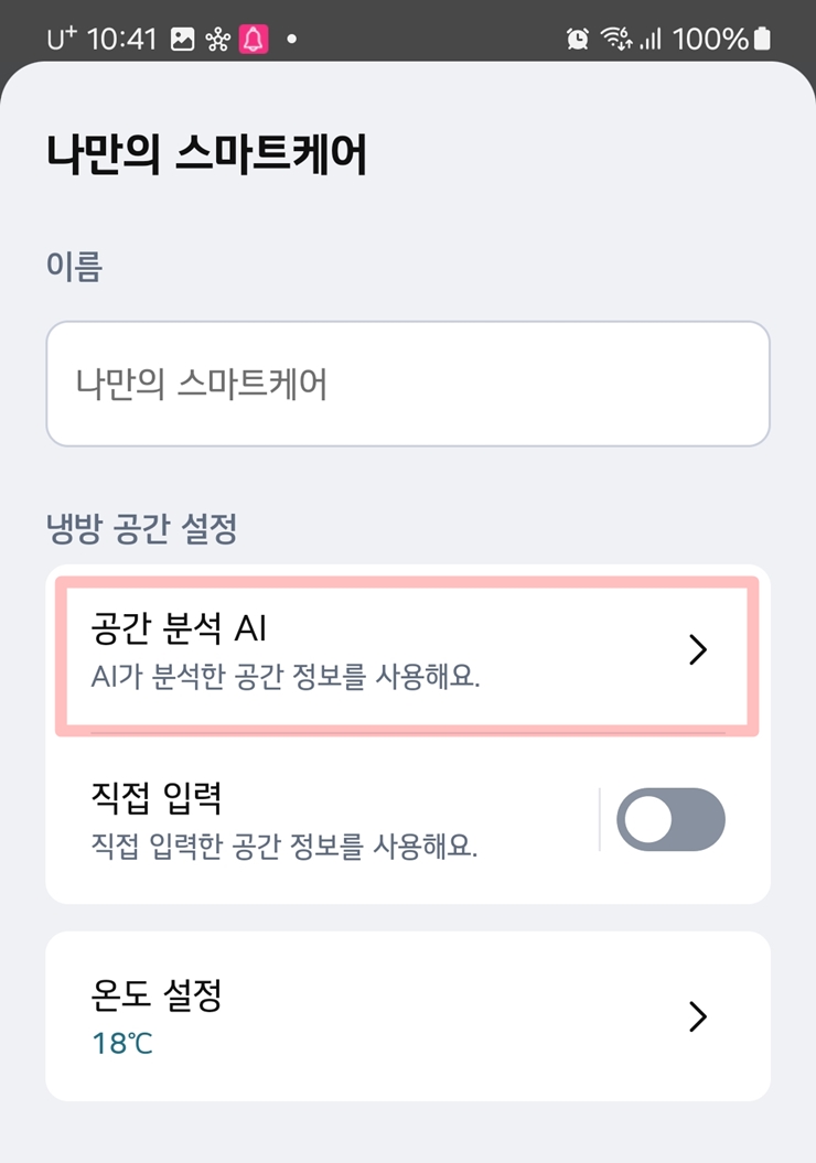 우리집의 공간을 AI가 분석해, 바람의 세기라든가, 방향 등을 정밀하게 조절해주는 기능이라고 보면 된다.