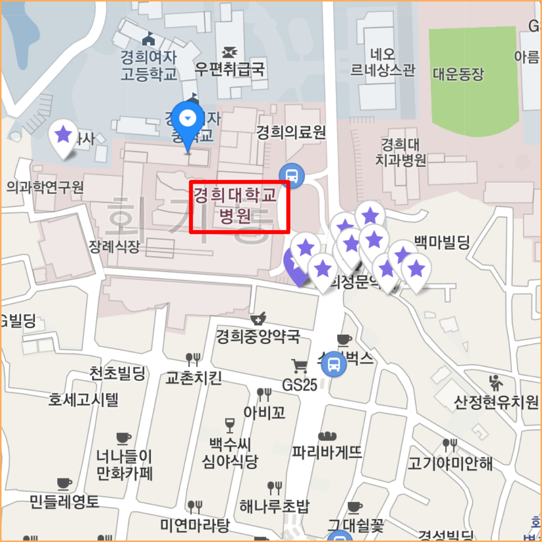 회기동과 달리, 강동경희대학교병원은 KB국민카드 재난지원금 사용처에 포함돼 있어요.
