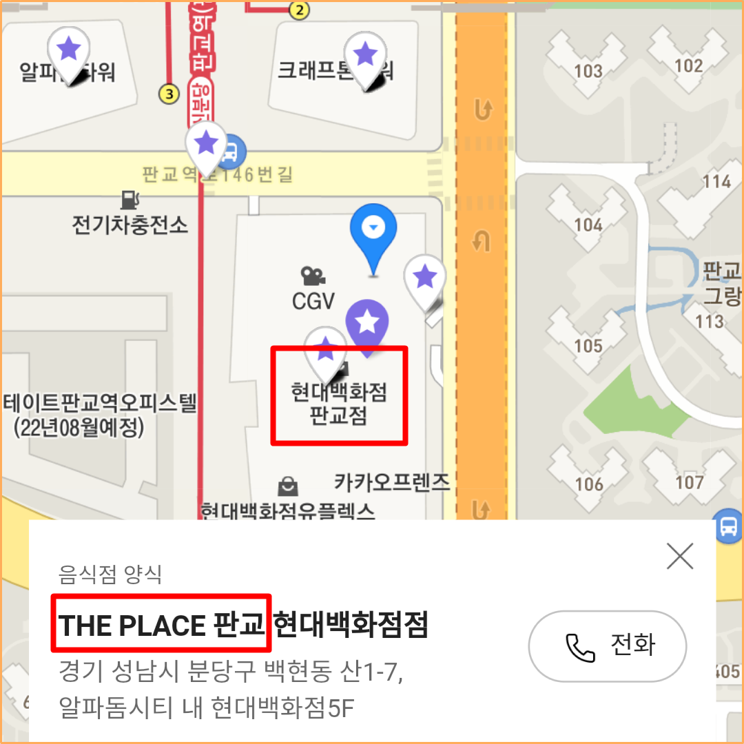 판교 현대백화점에는 투썸커피와 CGV가 검색됐어요.