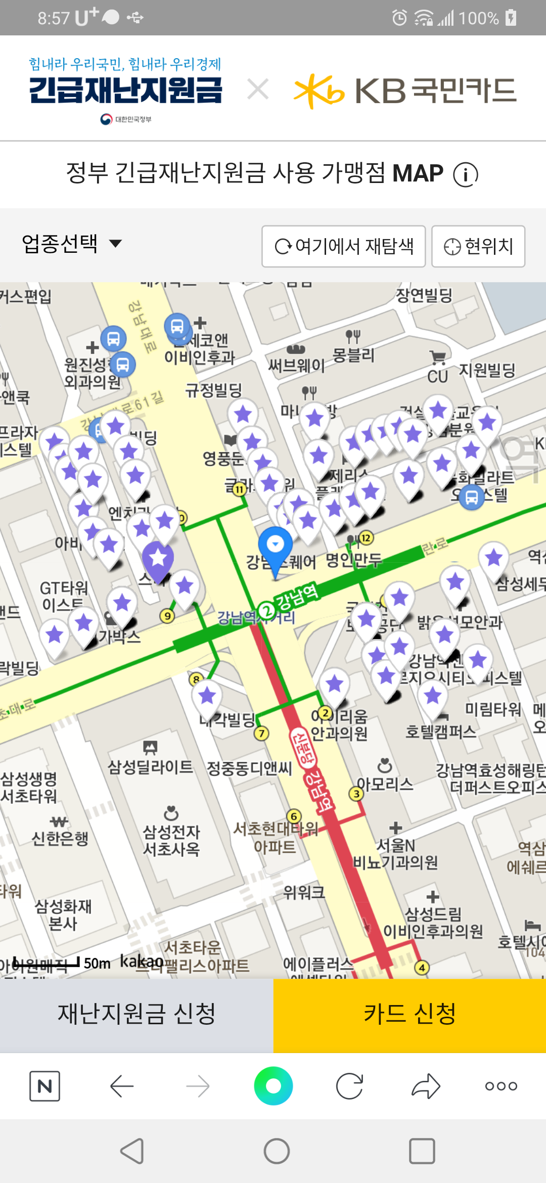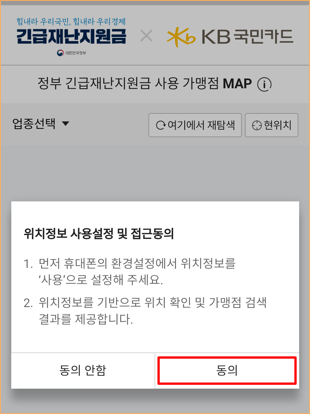 KB국민카드 정부 긴급재난지원금 가맹점 지도 서비스
