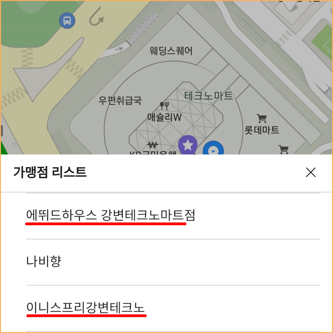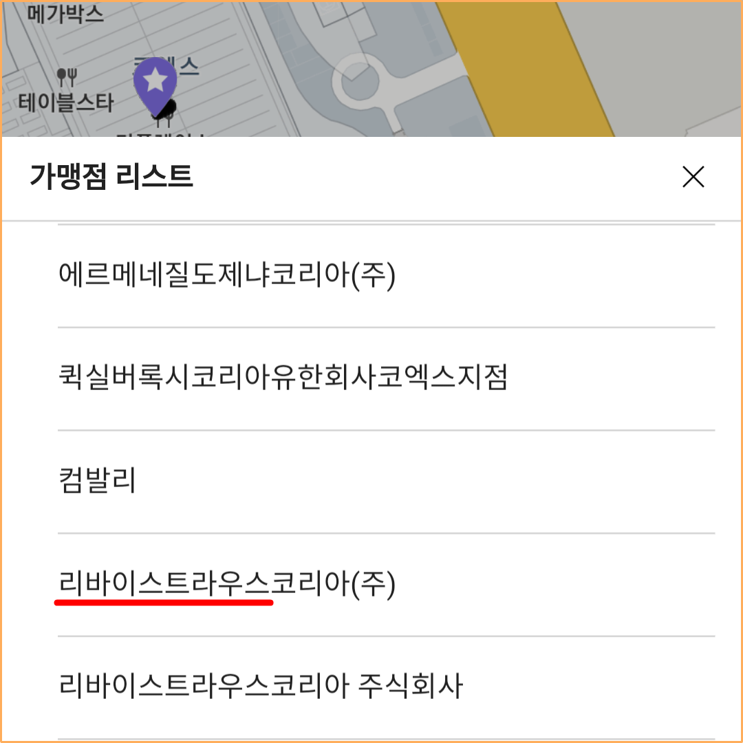 서초역에서 양재대로 방면으로 가는 길에 스타벅스가 있는데요. 막상 눌러 보면 가맹점 리스트에는 안 나오네요.