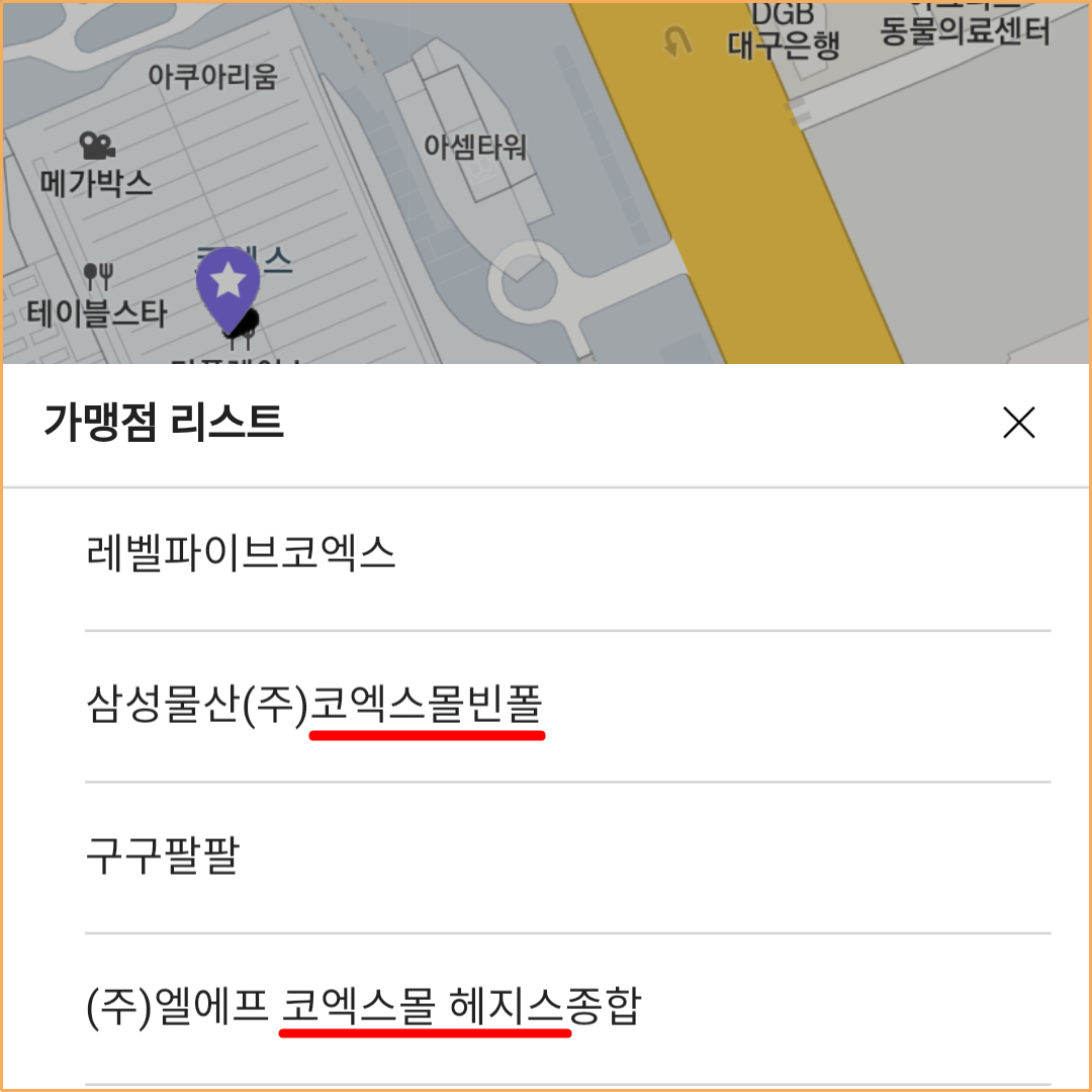 코엑스에 자주 가시는 분들은 KB국민카드 재난지원금 신청사이트에 들어 가셔서 매장을 직접 검색해 보시는 게 좋을 것 같아요.