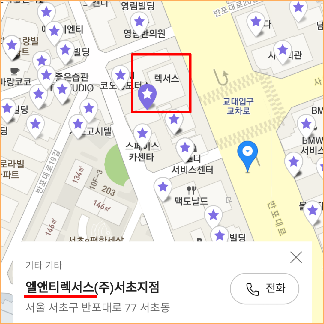 BMW 건너편에 있는 렉서스L&T도 검색이 되는데요.