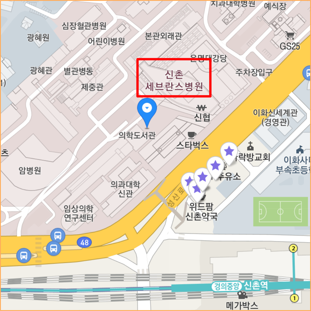 연세대학교 세브란스병원은 신촌과 강남 모두 가맹점 리스트에 등록된 곳이 없었어요.