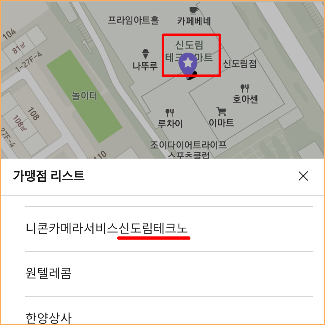 신도림 테크노마트에는 니콘카메라 서비스센터가 검색되고