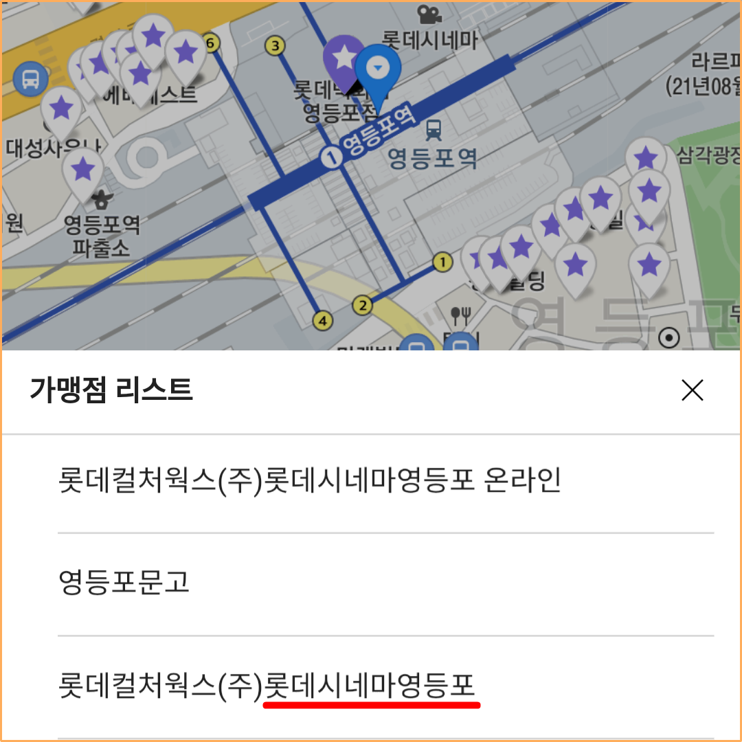 영등포 롯데백화점에는 롯데시네마와 영등포문고 등이 나오고요.