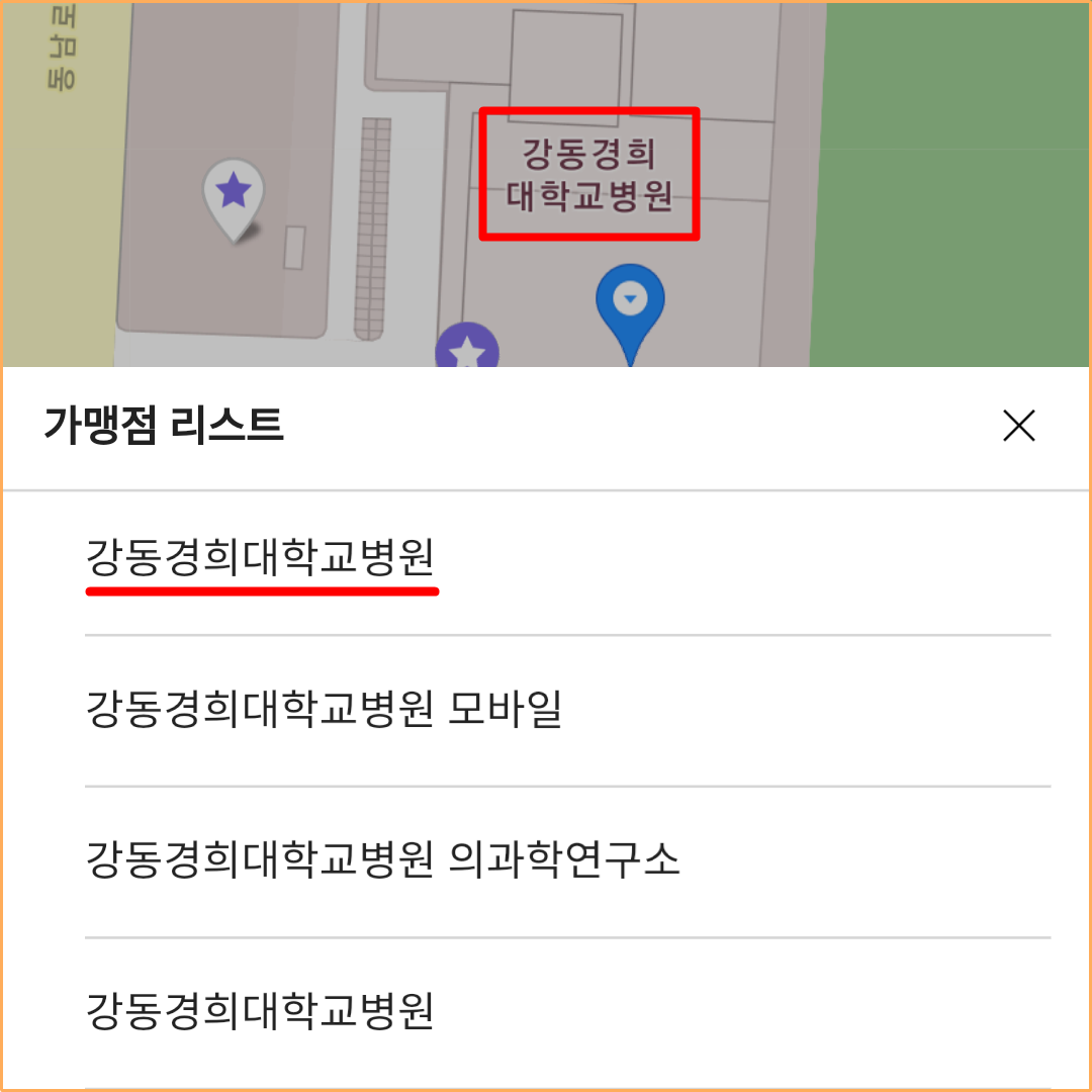 서울 회기동에 있는 경희대학교병원은 위와 같이 가맹점리스트가 아예 안 뜨더라고요.