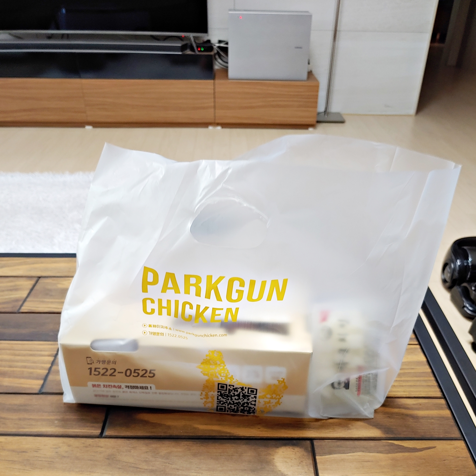 포장이 나오는 데까지 20분 걸린다고 박군치킨 사장님께서 말씀해주셨는데, 딱 그 정도만에 나와서 얼른 치킨 받아들고 집으로 왔어요.