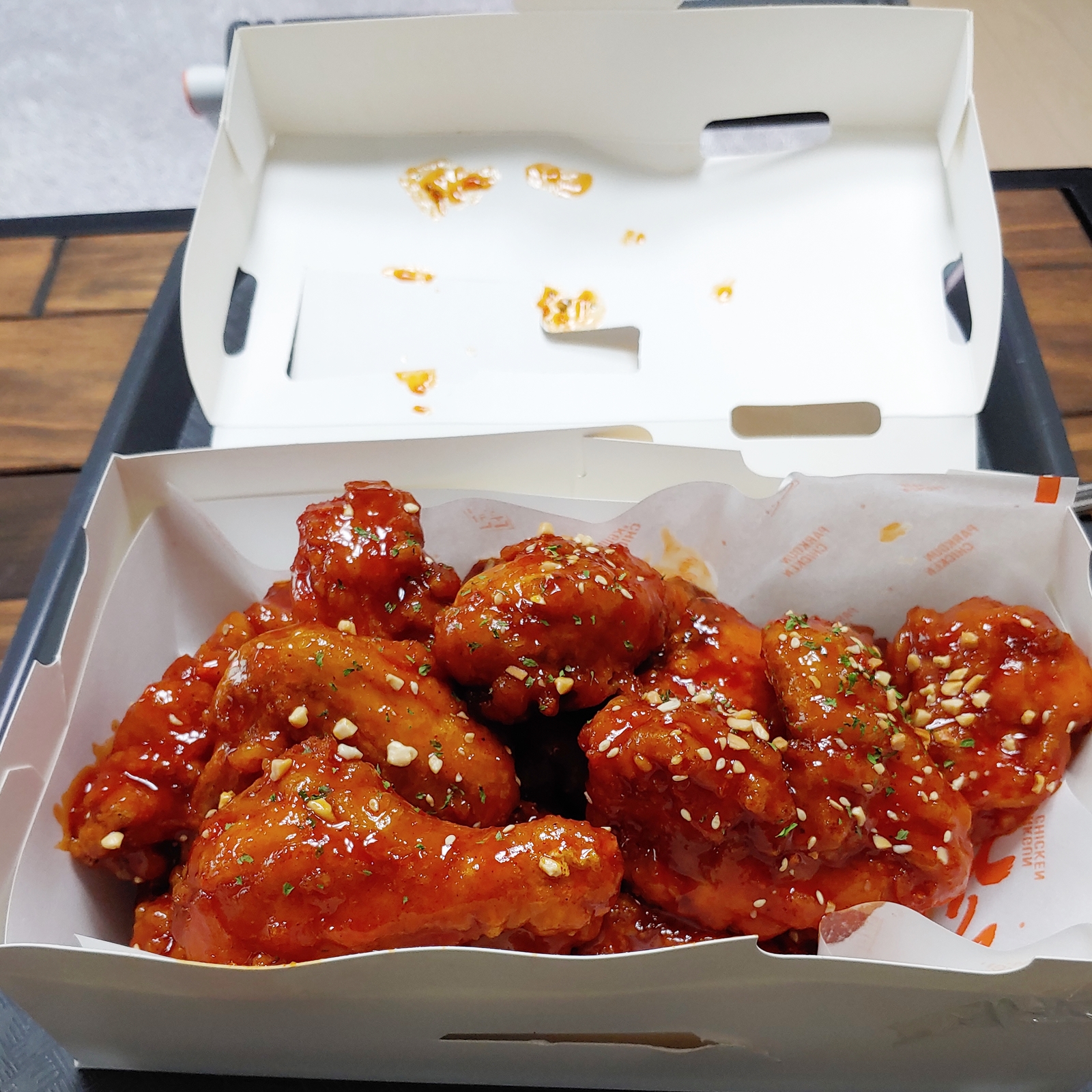 포장지를 여니, 양념치킨 특유의 달달한 향이 제법 강하게 올라 왔어요.